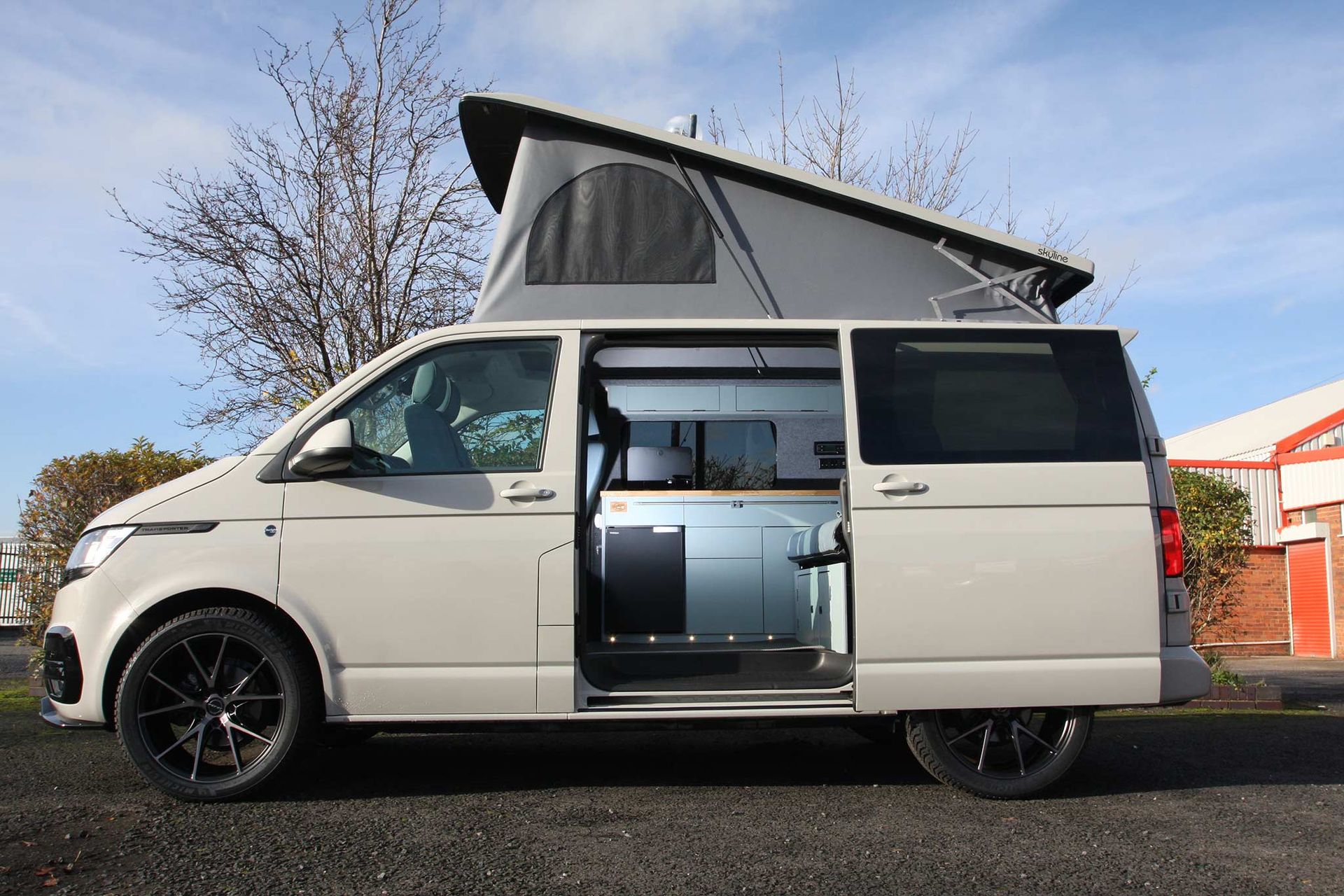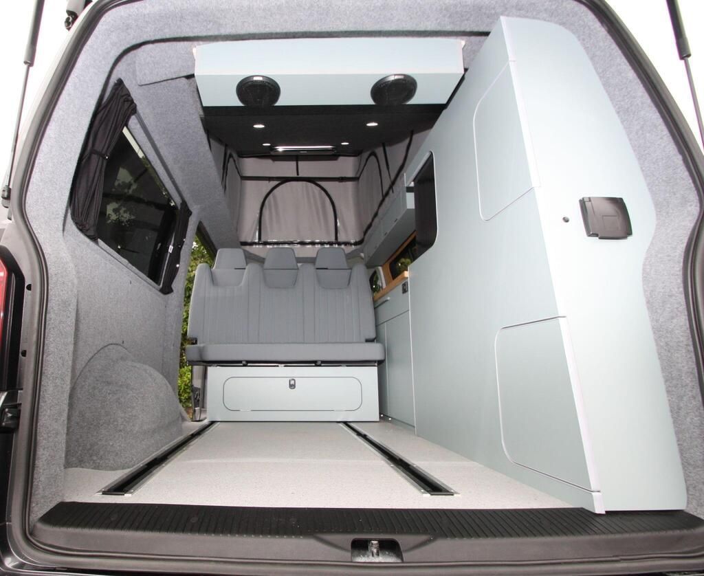 LWB DSG Highline tailgate with 3 seats rail bed Stunning Ascot grey camper with starlight campers bespoke interior