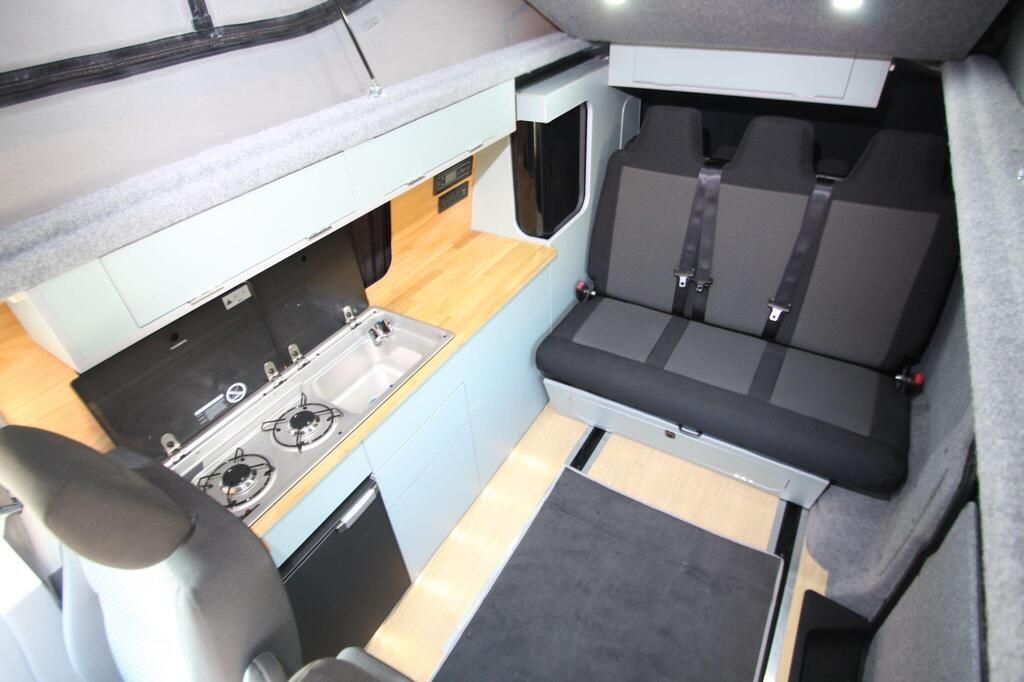 Full bespoke starlight campers 12v and 240v hook up system and leisure battery, fully insulated birch ply door cards, sink 2 burner and gas hob. Elevating tuv approved roof dimmable interior lighting finished in smoke trim and altro flooring.