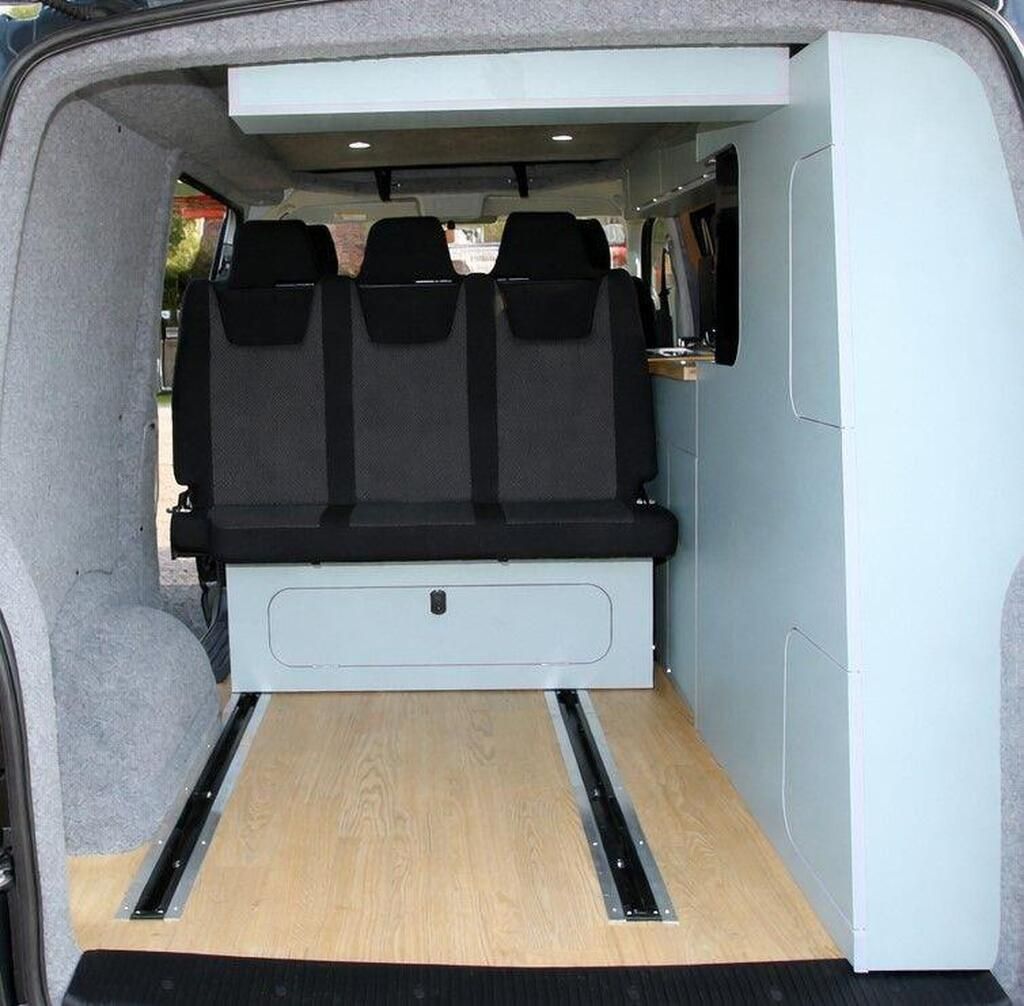 The Envision is a 5-6 people traveling camper van with a 1200mm width Rail Bed System Options for maximum versatility and space, and 3 seats in the rear – this can only be described as massive, a great layout for for people that want extra seating or just a big bed and as always comes with starlight campers 3 year warranty