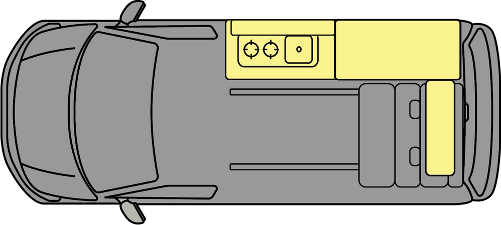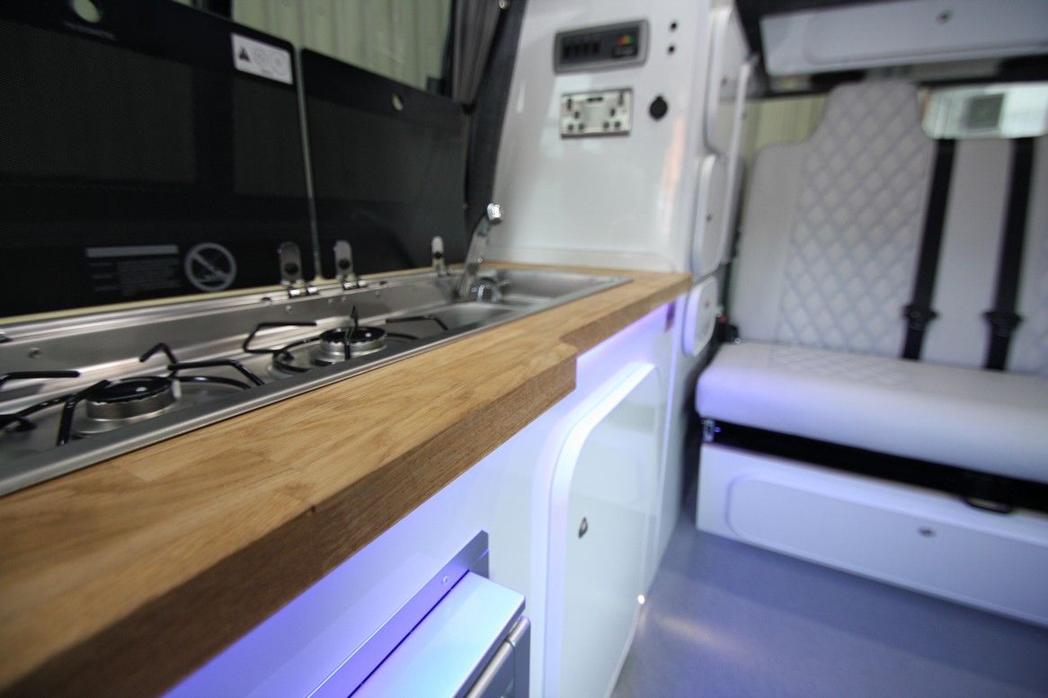 When you look at designing your van it can be a fun but scary process to get the correct layout design and colours. The Voyager will allow you to get a great living area choosing the colours that are right for you. The van is fully insulated carpet trimmed and windows which then lead to the units running down the side of the van all hand built and scribed to your van leading to the side of the units to your rock and roll bed which has raked positions on your seat and easy pneumatic bed to seating movement to make life easy and simple for you to use.
